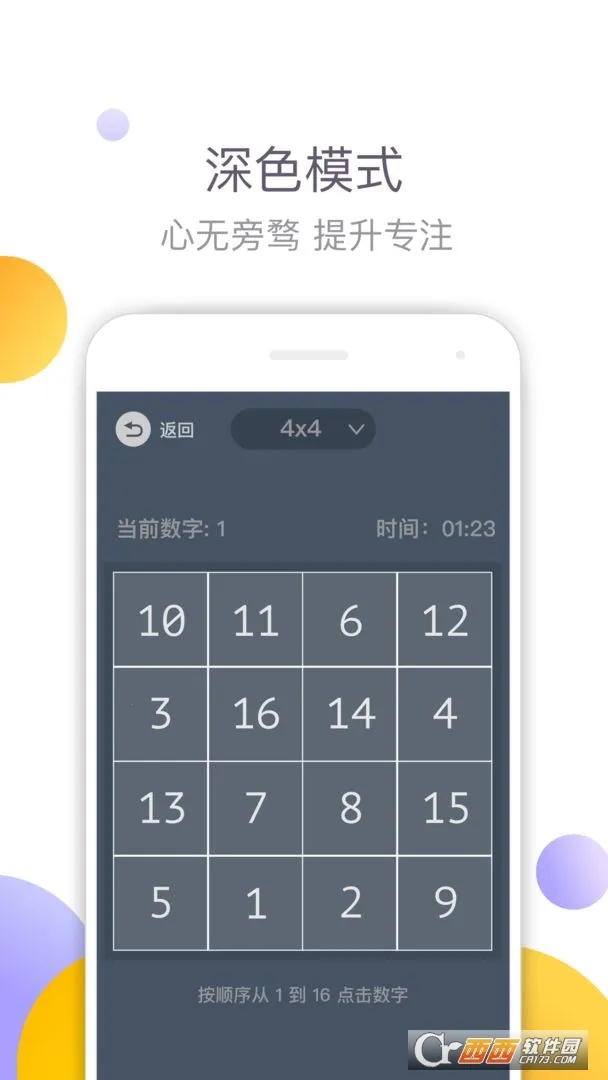 1. 采用系统随机生成模式,数字顺序每次都不同,避免记忆干扰,真正锻炼注意力与快速阅读能力。