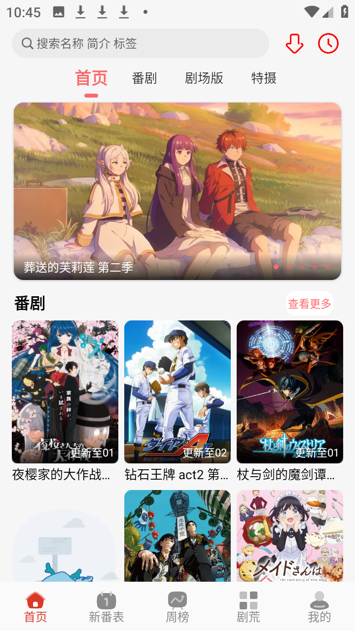 主页面采用卡片式布局,按“新番”“热门”“更新”等标签分类展示,一目了然。