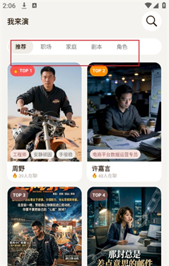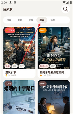 「我来演」以“角色演绎+剧本共创”为核心,覆盖校园青涩、职场干练、情感探索等多种场景,满足用户多样化的演绎与创作需求。用户可在这里摆脱现实局限,通过扮演不同角色释放情绪、连接同好,同时能够分享个人原创短剧剧本、与他人协作共创,借助软件功能一键生成可视化短剧,实现从想法到作品的快速转化,打造专属的演绎与创作空间。