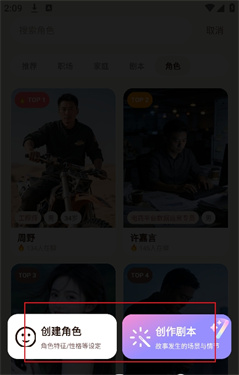 2、支持创建角色和创建剧本,这里点击【创建角色】