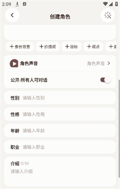 3、给你创建的角色输入昵称,上传头像,以及角色设定等