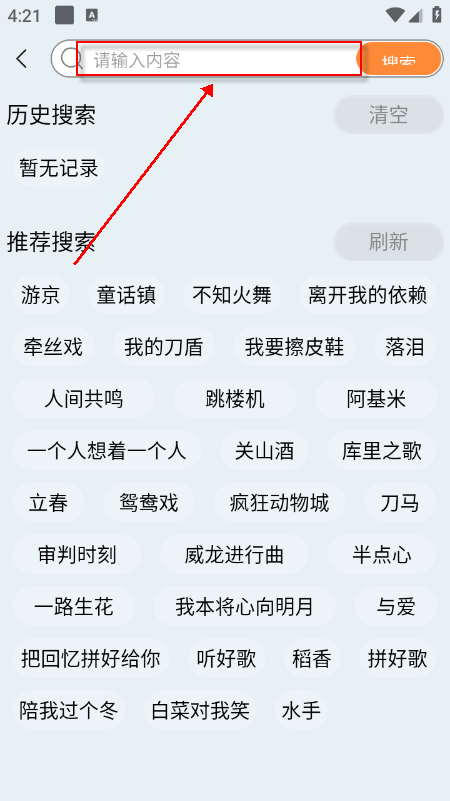 在顶部搜索框输入歌名/歌手/歌单,精准查找。