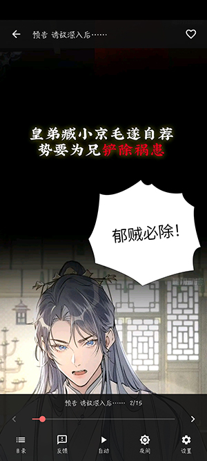 阅读体验舒适:高清画质呈现、流畅翻页无卡顿、智能清屏功能去除干扰,搭配夜间模式、亮度调节等贴心设置,适配不同阅读场景,解决用户追漫痛点。