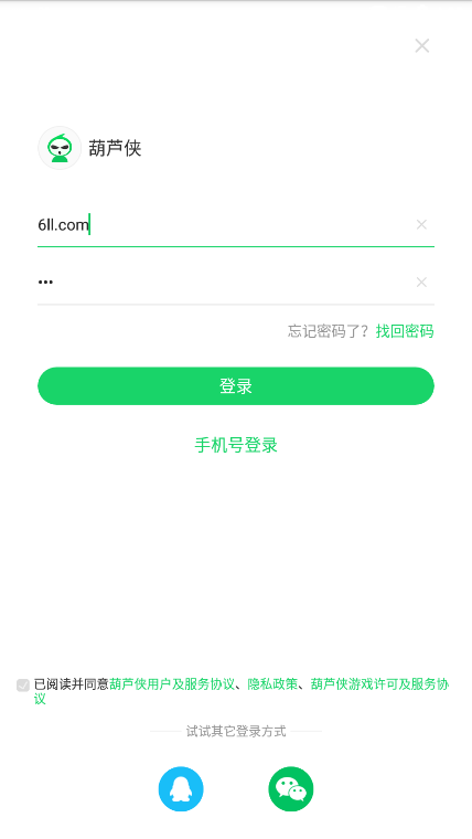 2、然后登录自己的葫芦侠账号,没有的话需要先注册一个;