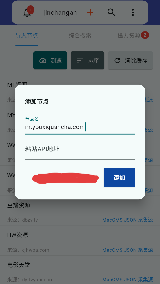 3、也可以手动添加节点,自定义输入节点名称以及粘贴API地址即可。