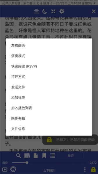 进入书籍阅读界面后,先设置阅读翻页模式。