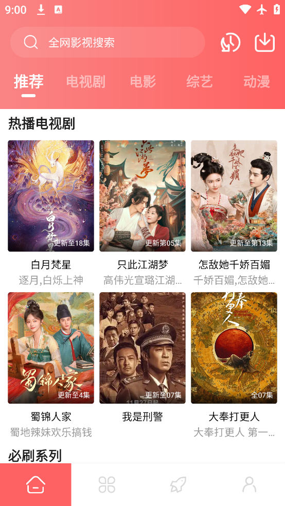 1、搜索功能十分实用,支持关键字搜索、剧集搜索