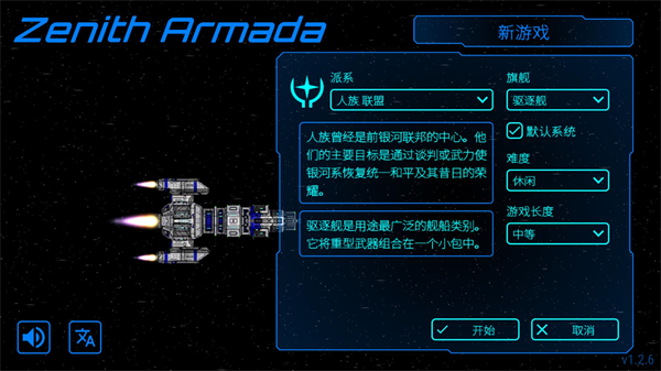 2、点击新游戏后玩家需要选择自己的派系和初始舰船。