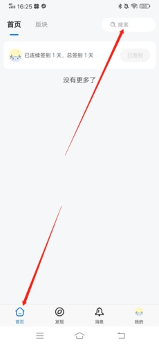 1、进入APP后,首先点击左下方“首页”,再点击页面右上侧的“搜索框”。