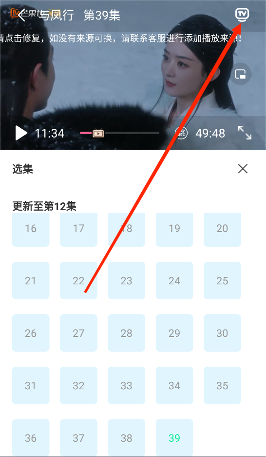 1、打开TOP影视App,找到想要投屏的电视剧,然后进入播放页面