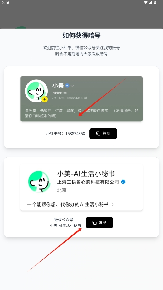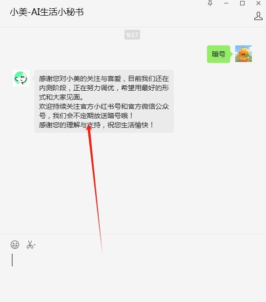 2、在正式开始使用之前需要对下暗号,暗号可通过官方小红书、微信公众号获得,它会不定时的发放一些暗号,给到大家。