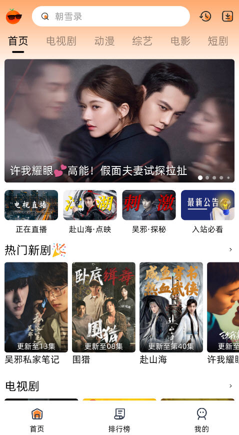 橙光视频app,一款手影视播放App,海量影视,尽观看! 提供电影、电视剧、综艺等多种影视资源,让你随时随地享受观影乐趣。 界面简洁,作便捷,是你的追剧好帮手!