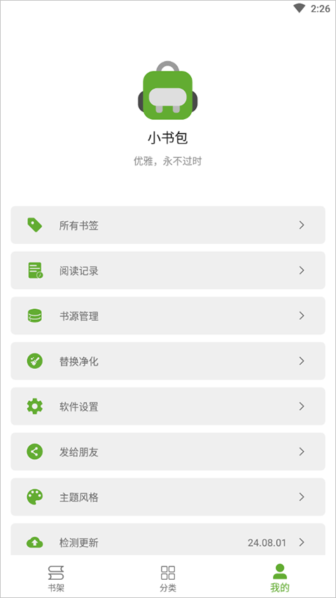 小书包app官方最新版是一款免费好用的小说阅读器,又名小书包小说app,其中内置了近百精品书源,用户可以通过软件阅读到全网最全的小说、电子书,软件还支持离线下载、导入书源、全网搜书等等,让你在这里可以得得到最好的阅读体验。