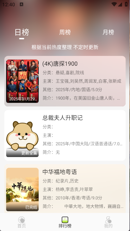 3、热门推荐:热门和榜单内容即时更新,让你轻松发现喜爱的大片;