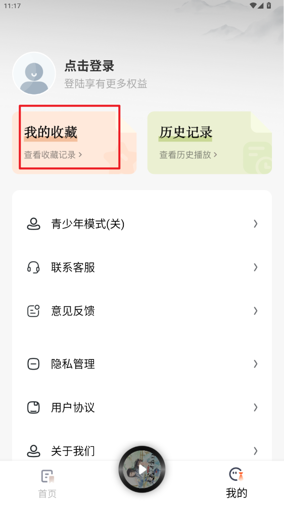5、首页下栏点击“我的”,即可看见“我的收藏”。