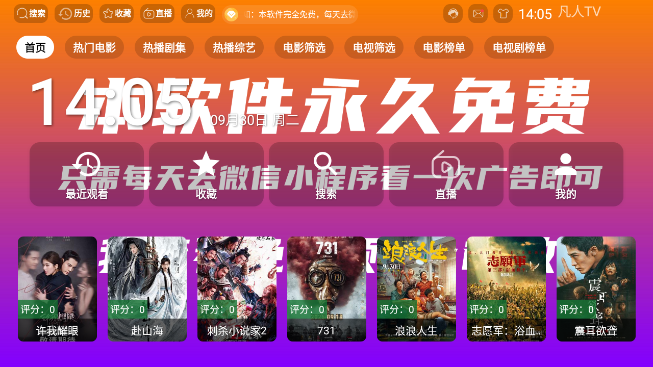 凡人TV电视版2025最新版是一款高清免费的影视追剧神器,软件汇聚了电影、电视剧、动漫、综艺等海量高清资源,与主流视频平台同步更新,热门内容第一时间呈现,还支持手机平板等多设备使用,内置多元视频源画质清晰,更有智能搜索功能,让用户尽享畅快无阻的观影体验!