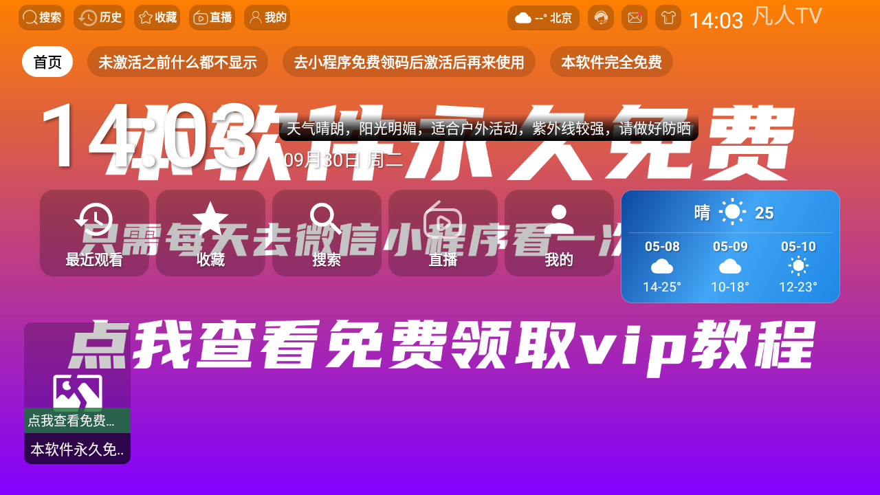 1.打开凡人TV,首次使用可以看到是空壳界面
