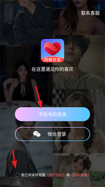 3、勾选用户协议和隐私政策,点击手机号登录;
