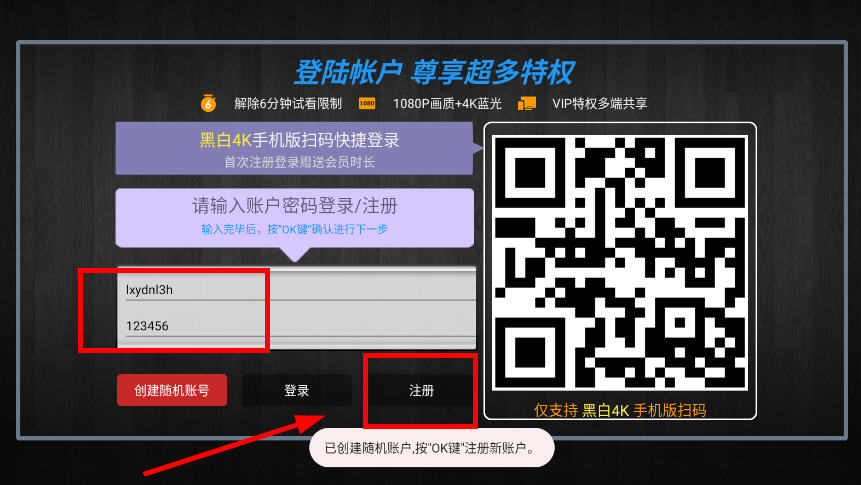 6、点击跳转的时候此时如果没有登陆,会提示注册登录的页面,直接点击随机创建;