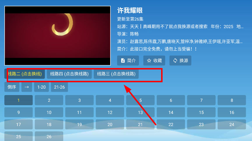 6、点开直接跳转播放,可以调整播放源和观看集数。