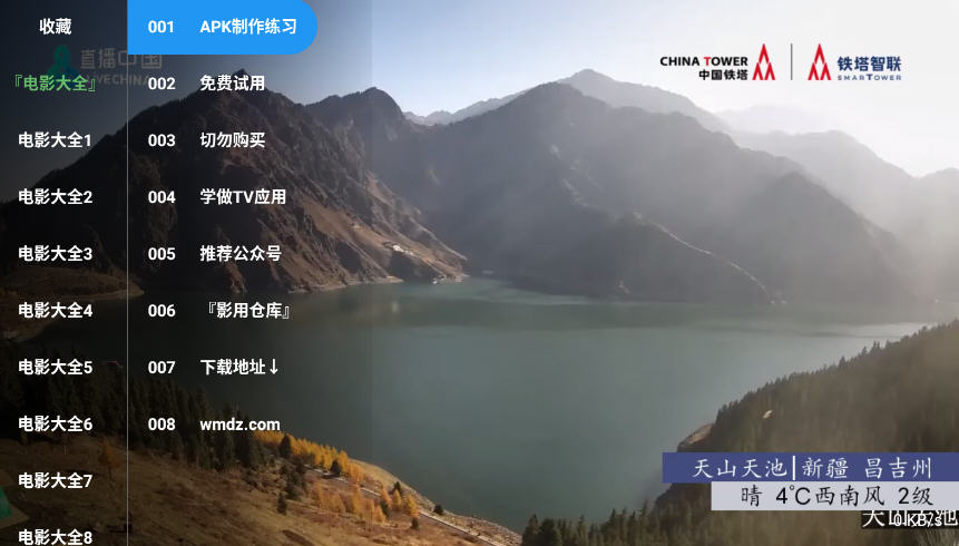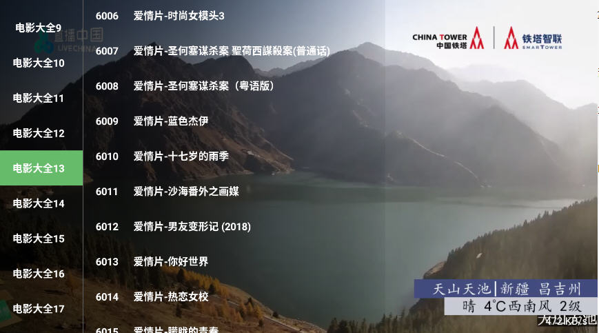 3、点击ok键调出频道单,可以自取类目和电影;