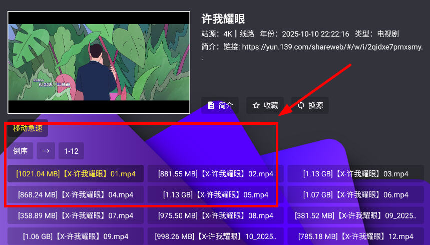 6、点开直接跳转播放,可以调整播放源和观看集数。
