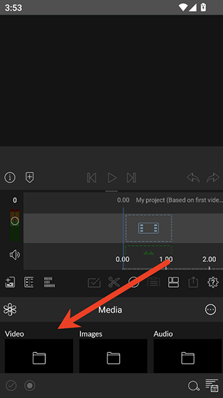 将音乐文件从媒体库拖动到时间线上的一个空闲的音轨上。