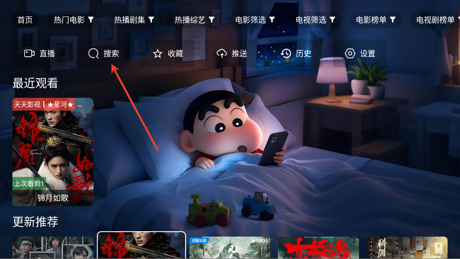 2、点击首页搜索图标,可输入关键词查找电影、电视剧或演员。