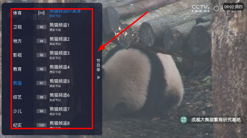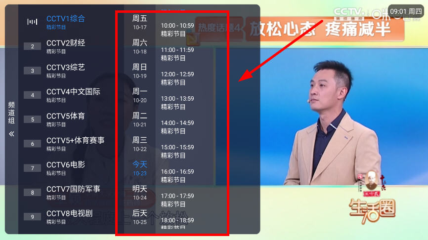 2、点击遥控器ok键即可调出更多频道选择,还可以查看节目单详情预约节目;
