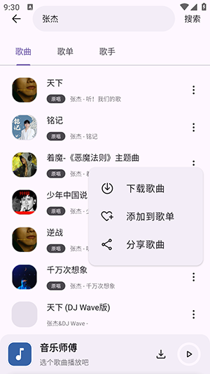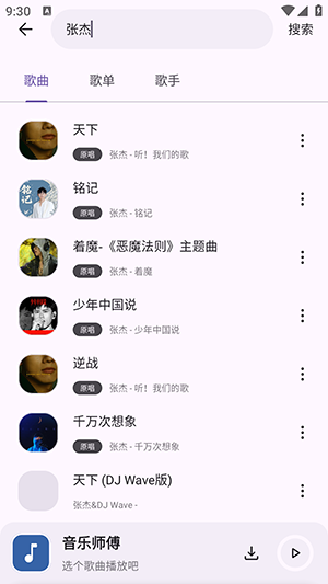 音乐师傅APP是一款纯粹免费的音乐播放器,无广告、无付费项目。软件汇聚全网热门歌曲,涵盖流行金曲、经典老歌及小众佳作,让您毫无干扰地畅享所有音乐。