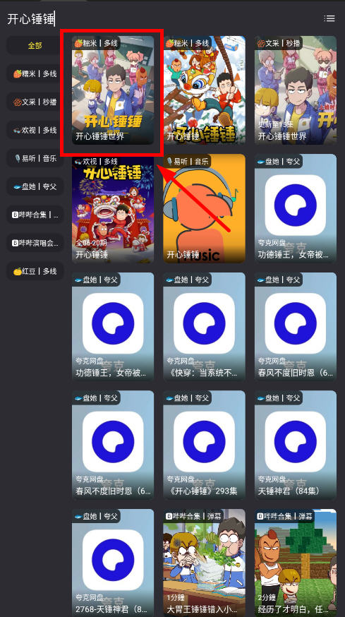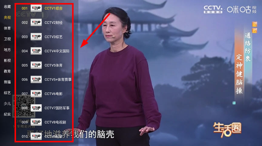 2、自动横屏播放,点击左侧可以调出更多频道的选择;
