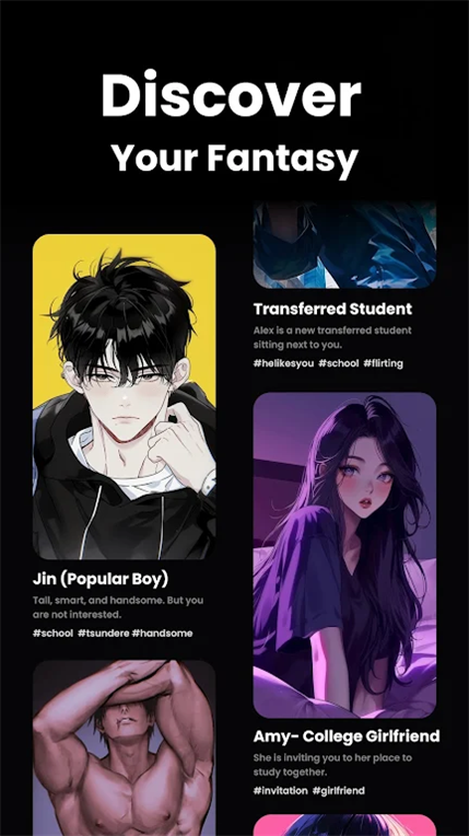多元角色与场景库:涵盖动漫男友、神秘病娇同学、史诗英雄等数百种预设AI角色,覆盖奇幻冒险、校园drama、科幻任务等丰富场景,为用户提供即开即玩的角色扮演素材。每个角色均有人设完整的背景故事与互动逻辑,能快速代入对话情境。