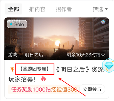 打开Solo游戏app ,可见“鉴游团专属"活动,进入活动页面查看要求。