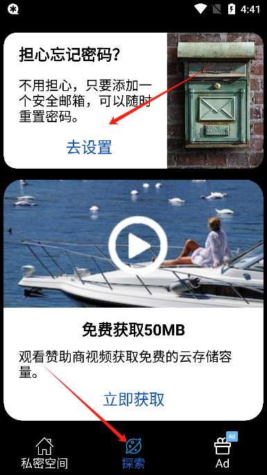 4、接着我们点击探索,你可以新建一个安全邮箱,这样就能随时重置你的密码了