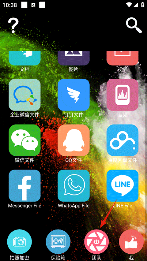 1、打开智块加密APP,点击屏幕下方的团队图标进入;