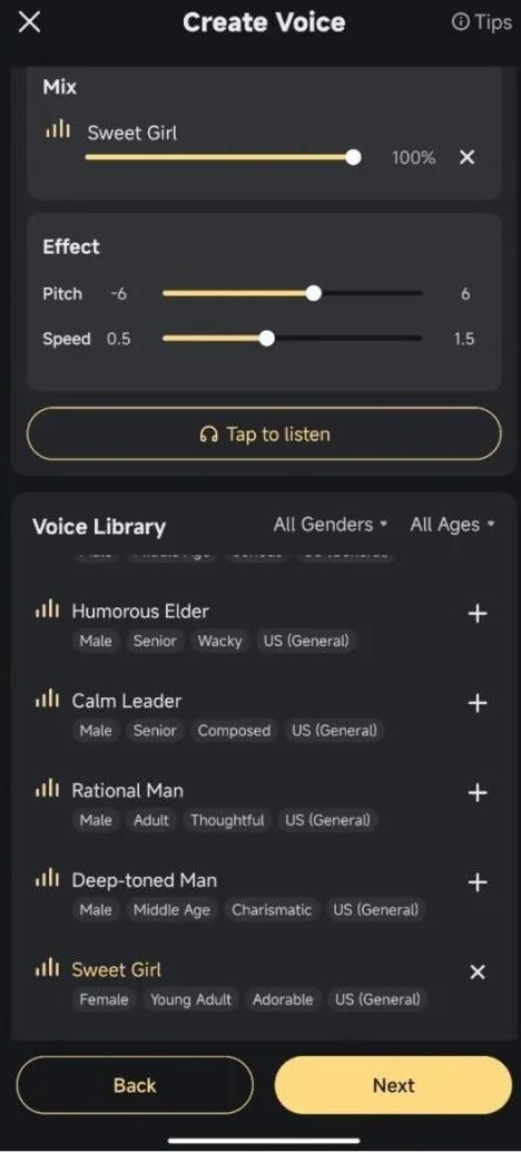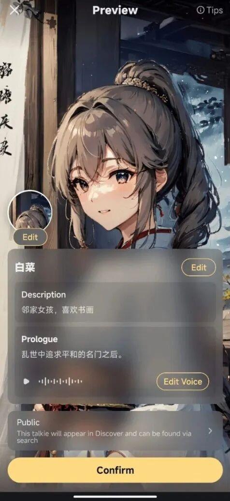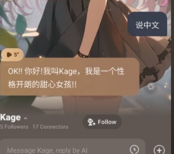 2、用户还可以通过调整对虚拟人物的声音进行调整,从而让人物的角色定位更加生动和准确。用户在与AI的聊天过程中会得到文字和语音两种形式的AI回复。