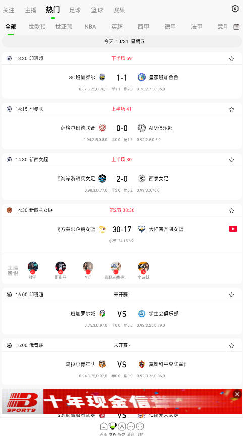 直播观看:高清画质、多线路切换,确保流畅观赛体验。