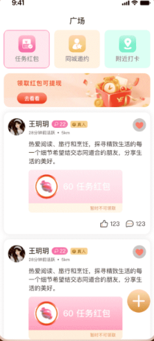 用户开启定位后,可查询同城内的邀约活动(如线下聚会、打卡活动)并申请加入;同时支持切换城市,查找其他城市的潜在交友对象,灵活拓展社交范围。