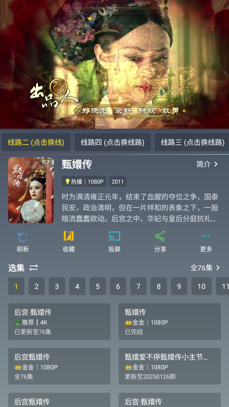3、还可以随时切换播放线路,点击投屏可以投屏到电视上哦。