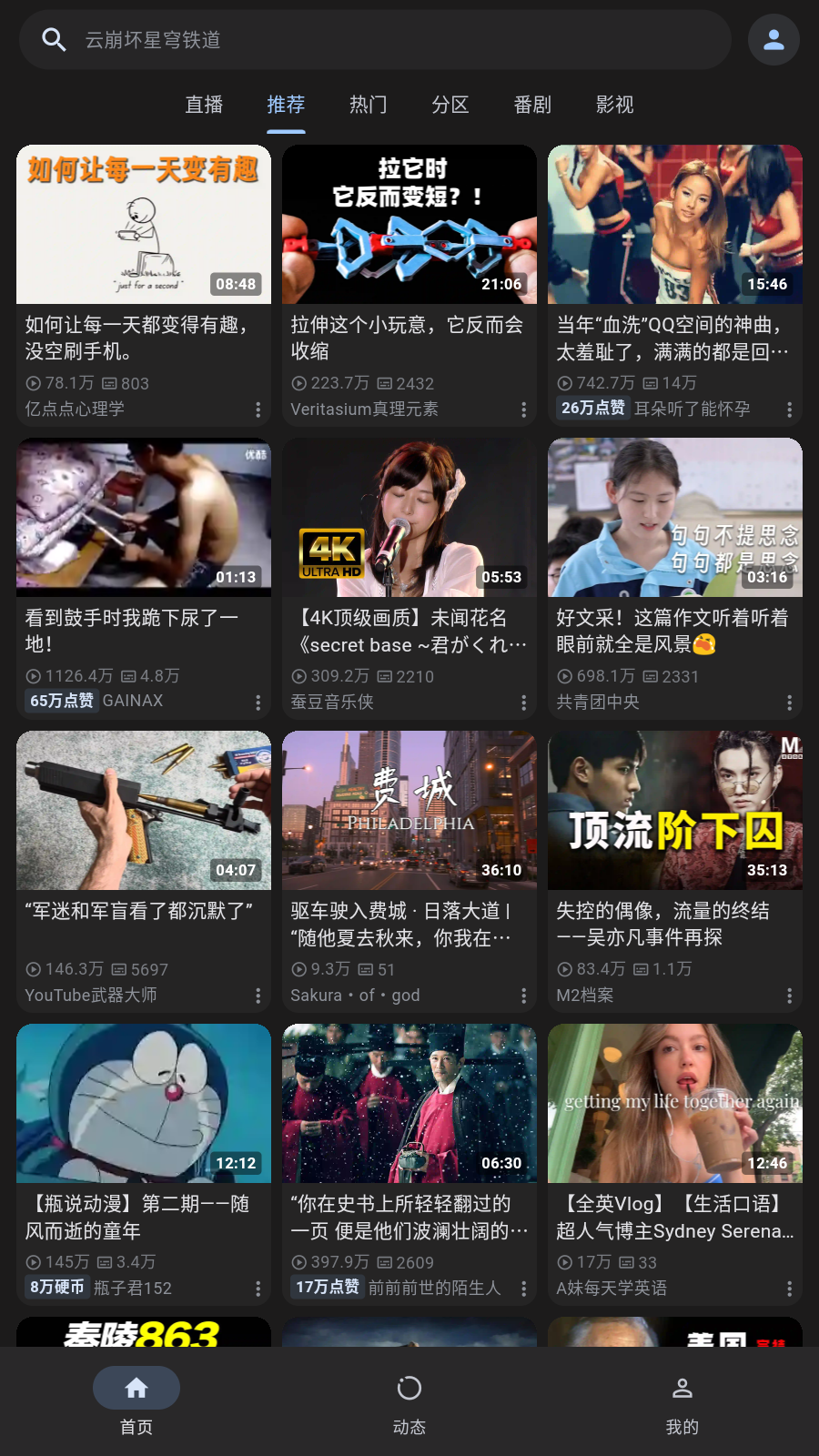 可屏蔽黑名单用户发布的视频,并分类查看动态(全部、投稿、番剧),减少干扰内容。