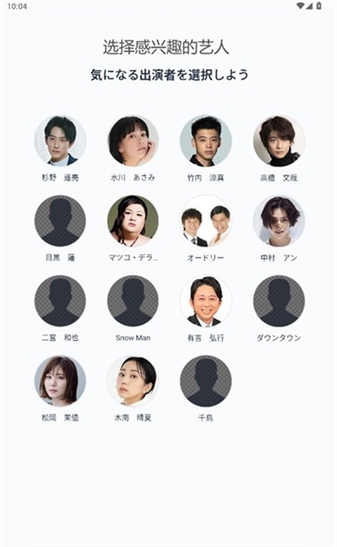 2、选择喜欢的艺人,应用会根据你感兴趣的艺人而推你相关的内容。