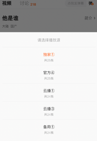 点击换源后,会弹出所有的播放源,可以尝试切换速度快的播放源,并且我们可以在此处看到每个播放源更新到了多少集。