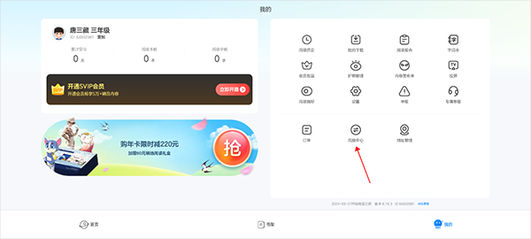 kada阅读HD版本操作入口:登录应用后进入【我的】页面中点击【兑换中心】