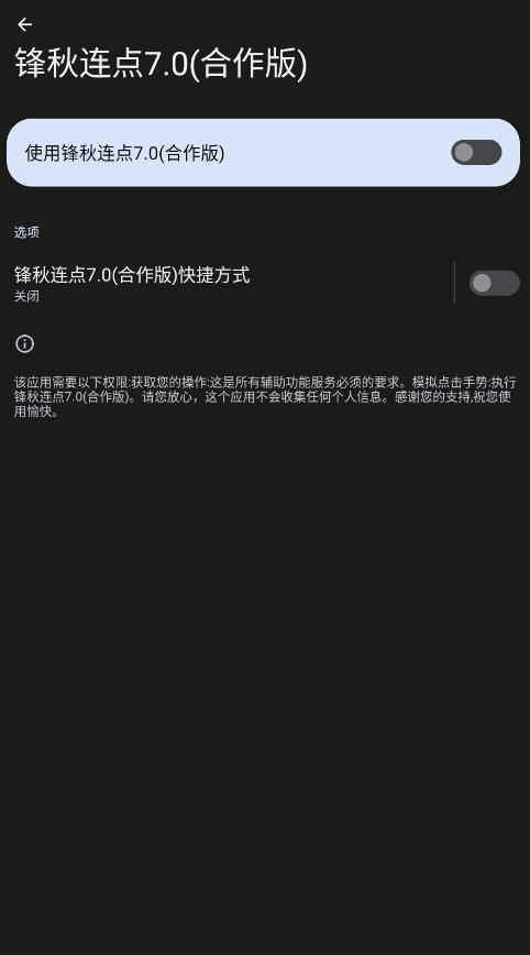 锋秋连点7.0最新版本凭借其强大的功能与极简的操作体验,成为手机自动化领域的实用利器。无论是提升游戏体验、优化工作效率,还是应对限时抢购等紧急场景,它都能以智能化的方式帮助用户轻松应对。立即下载锋秋连点7.0,开启高效便捷的自动化生活!