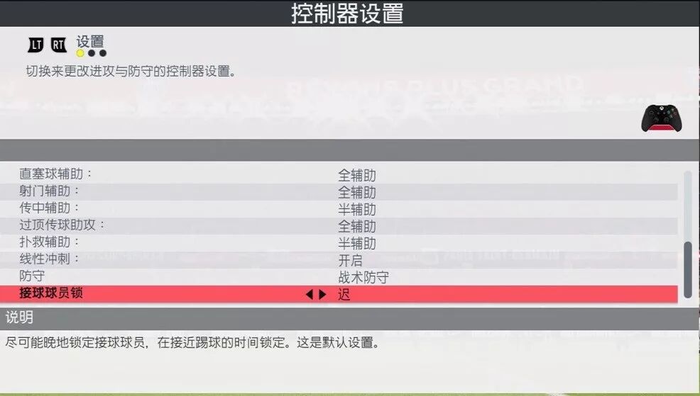 5、“接球球员锁定”中,如果你设置为了“迟“,为您提供了更长时间调整的传球方向。