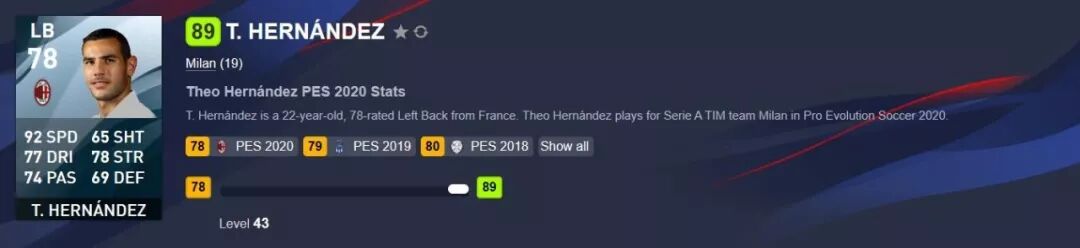 游戏中的特奥绝对算是一个攻守均衡、身体强壮的顶级进攻型边后卫。盘带80+84,双传81+82,双防达到77+82,甚至还有着高达99+96的双速;85的身体对抗配上强壮的身体模板,进攻防守都没有太大缺陷。与此同时,他还自带9个技能,不过都是以射门和过人技能为主,最重要的盯人+精确横传球推荐加练。但是特奥最大的问题在于,pes2020中状态持续性被一通乱砍至仅剩2,这使得他每场比赛的状态可能是惨不忍睹,能以出色的状态上场机会寥寥无几,这需要玩家自己进行斟酌。